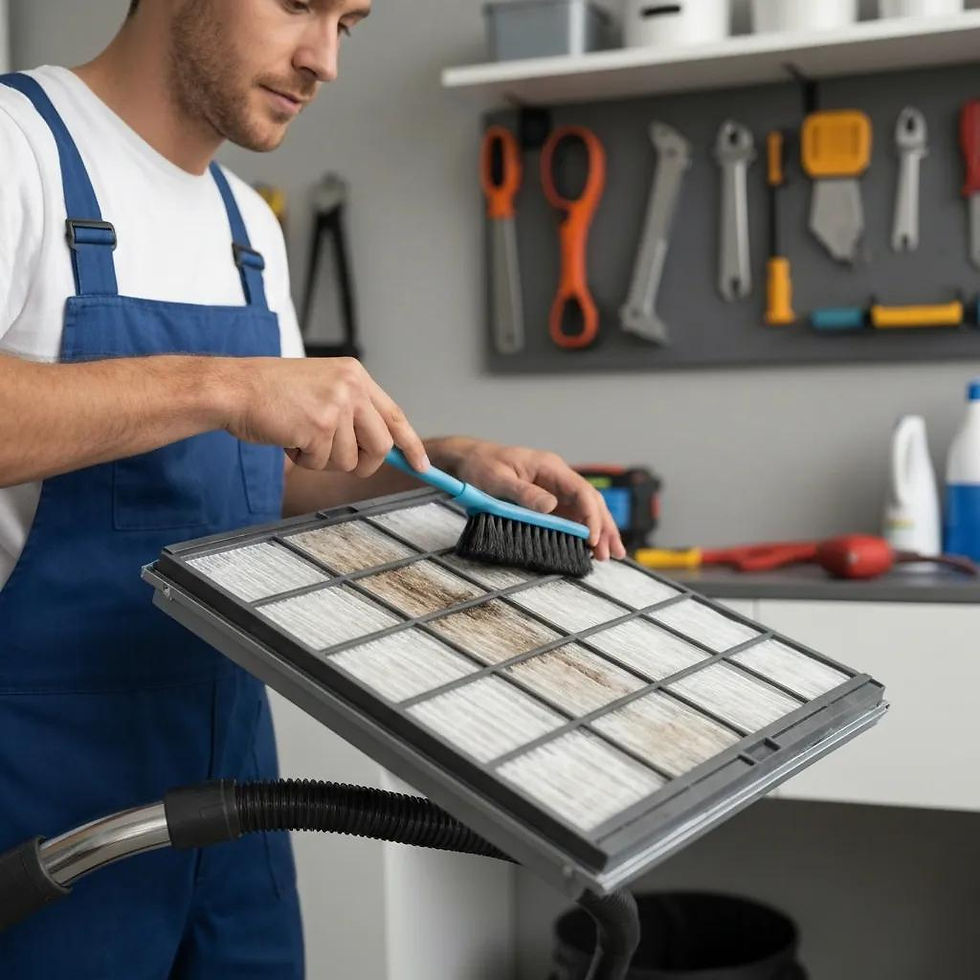 Cleaning or replacing filters is a high-impact, low-risk task that usually takes 10–30 minutes and immediately improves airflow and air quality. Turn the system off, remove the filter panel and look for dust, pet hair or heavy buildup. Clean reusable filters with a soft brush and a vacuum, or rinse them with lukewarm water and let them dry completely before reinstalling. Replace disposable filters according to the manufacturer’s schedule. Check filters monthly during heavy use and clean or replace every 1–3 months depending on household conditions and filter type. Call a technician if you find oil, soot or persistent odors.